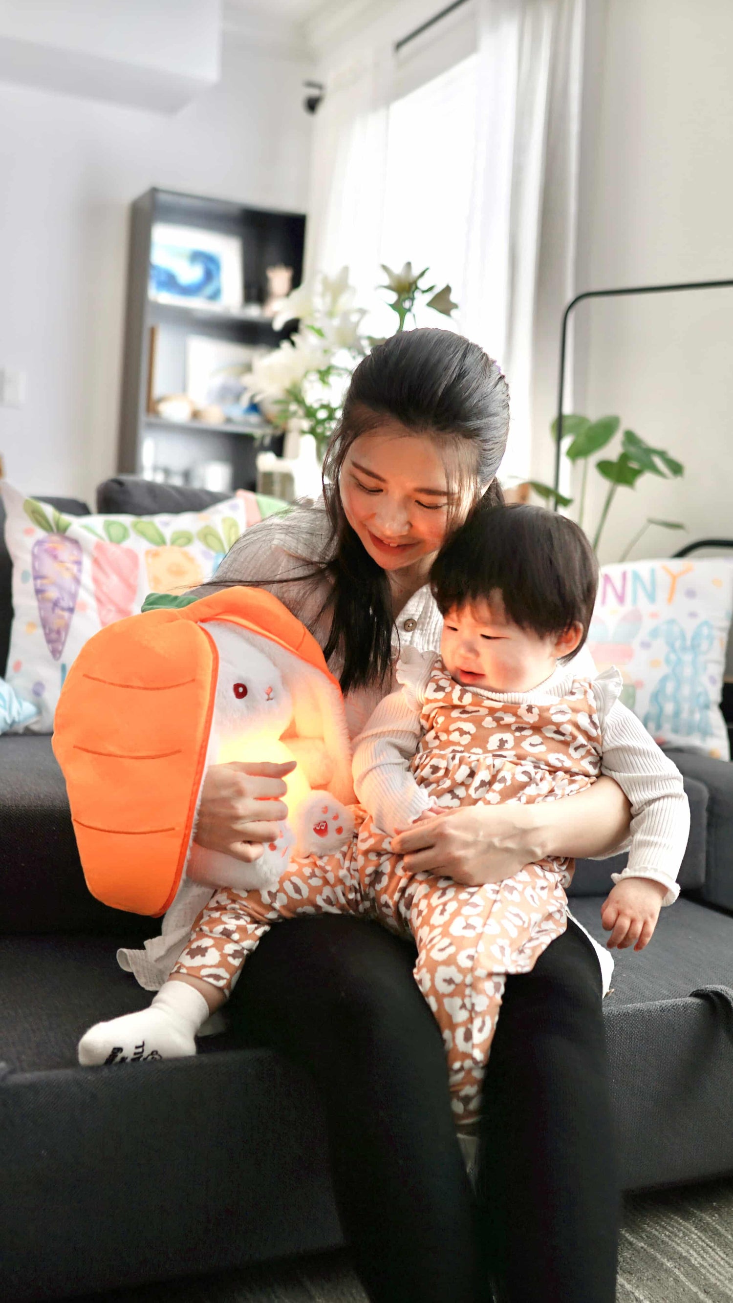 Yes, the Heal Carrot Bunny is made from child-safe materials and includes a low-heat LED light. It’s suitable for children aged 3 and above.